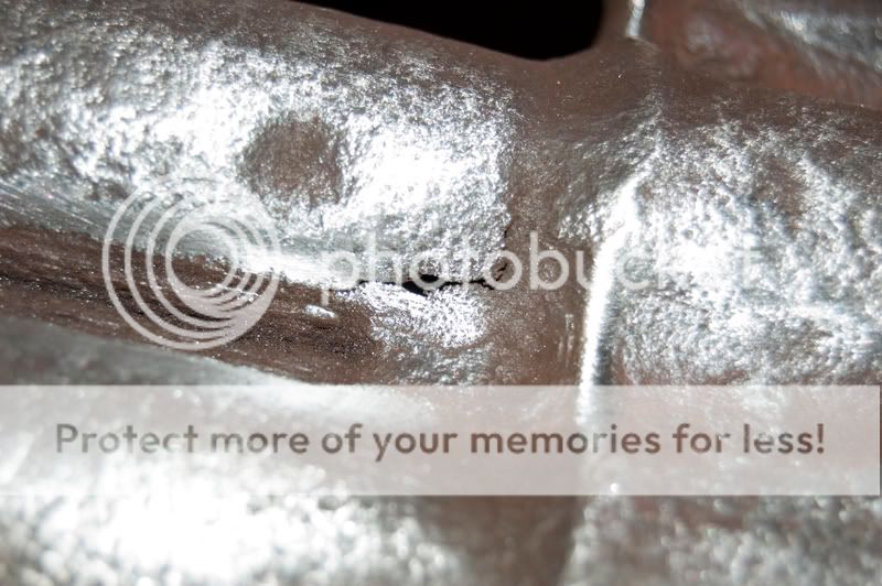 After poking around looking for air leaking from the downpipes, I didn't find much, but thought that the gaskets were worn or not fitted at all... Neutral Removed the downpipes after scraping my knuckles about 50 times and while cleaning them I found a little hole