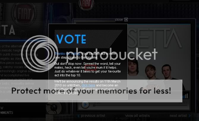 I voted for your band Eddie, give fellow BCFers a helping hand and all but I kinda wish I hadn't now tbh. Not so much to do with the fact that I'm not a great fan of your musical style (I'm not a great fan of the 'post hardcore' genre in general though) but more to do with the fact that I'm willing to bet the winner will be the one with the biggest online community they can call upon rather than the most individual/creative act (it's currently the frankly talent-free Cathy JJ - record company 'helped' write the songs...)