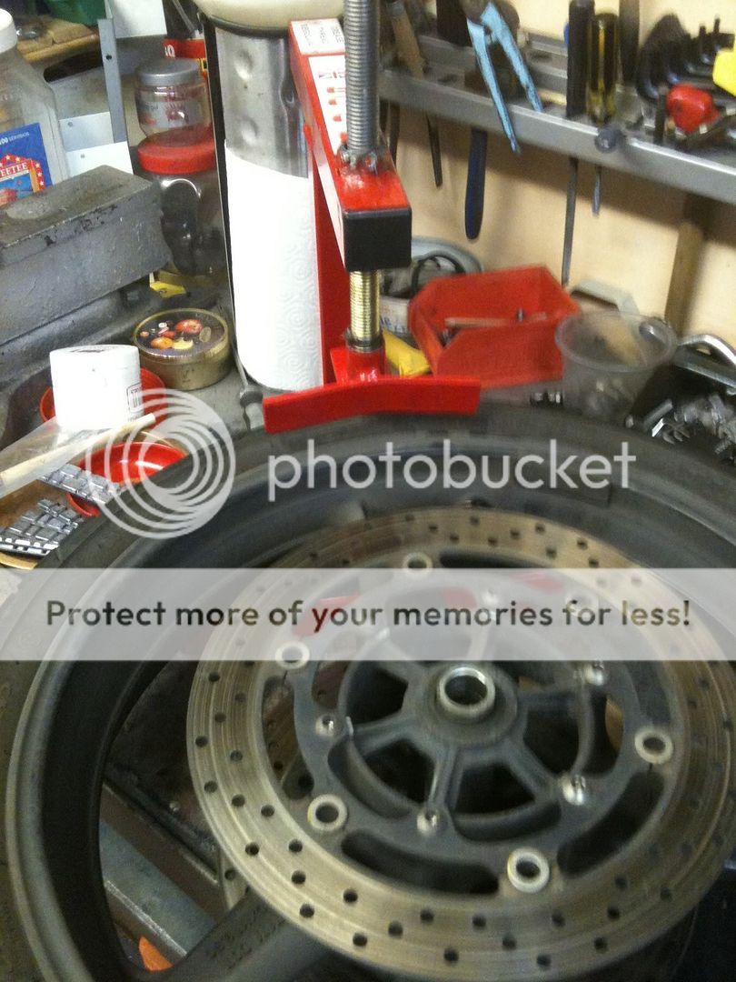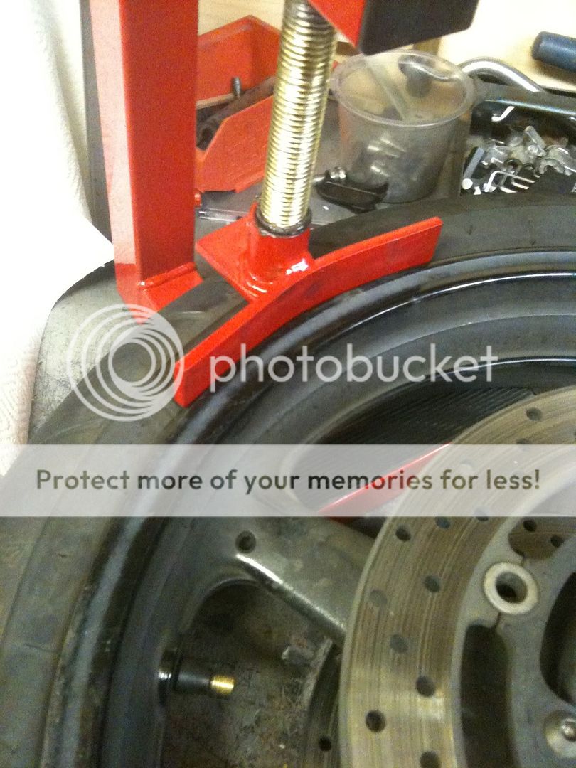 Right finally used my beadbraker in anger last night. The aim was the change the tyres on my TDM.