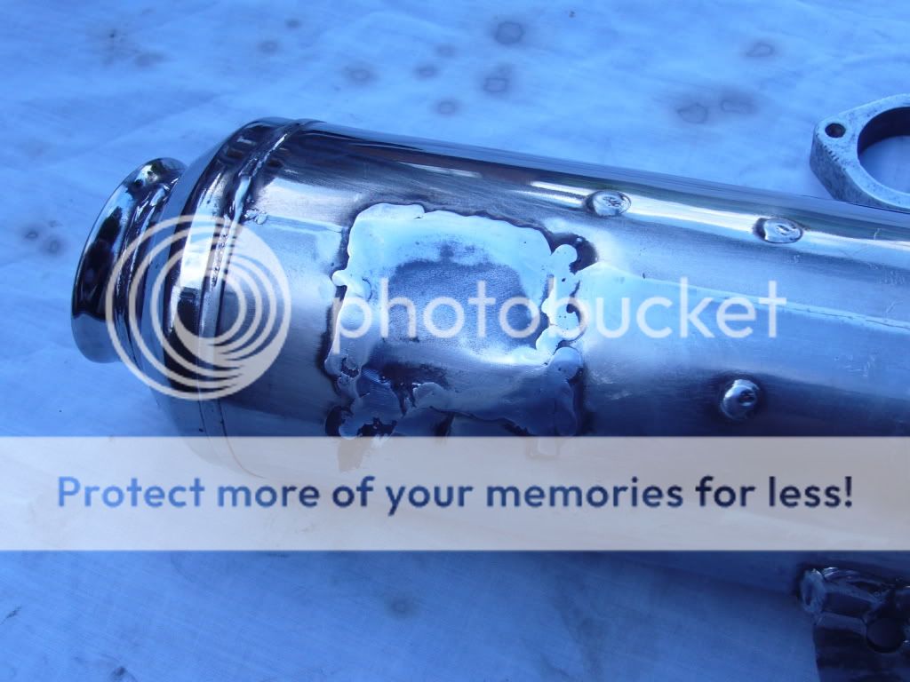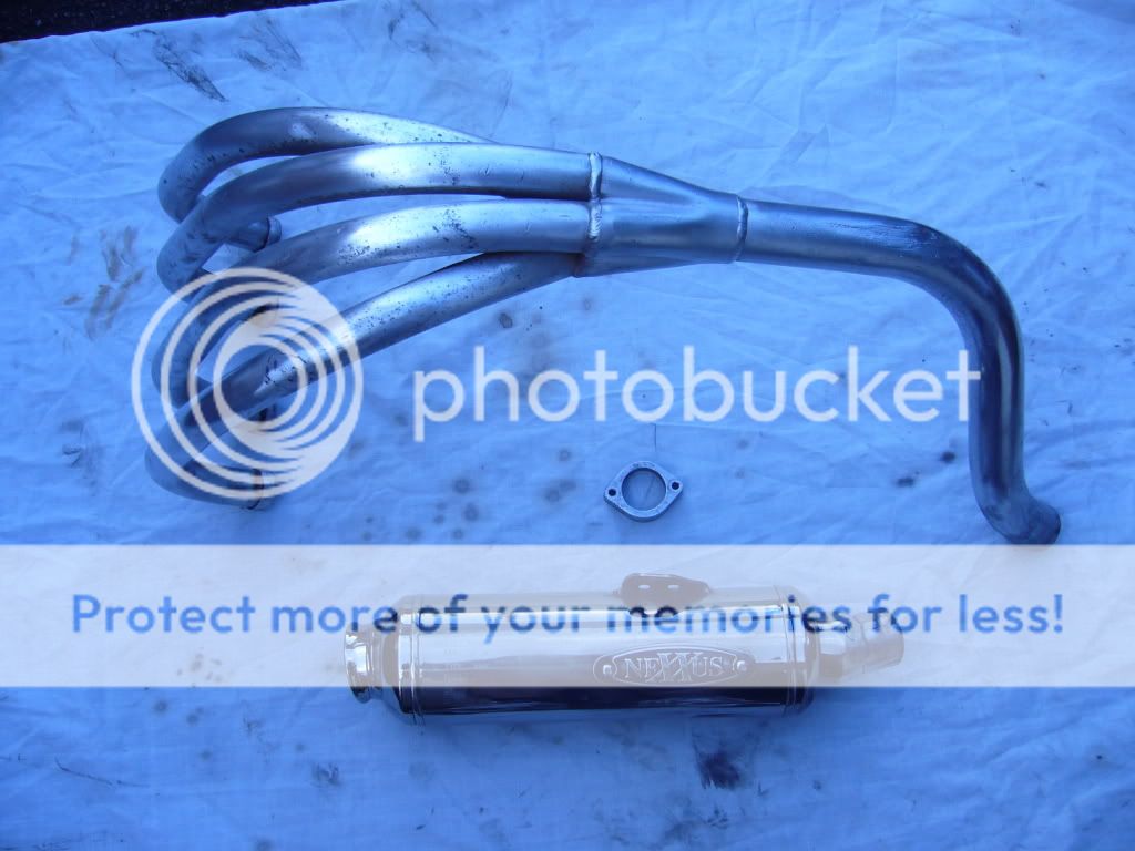 Last night I took the final nut of the 4 into 1, and off came the pipes. Now a question, have any of you seen, or use aluminum pipes. These are defiantly ally, going into a Motad Nexxus. The pipes are in pretty good nic and a bit of wire wool is bringing them up nicely. I will polish with autosol this weekend. The can has been welded in two places, one you cannot see on the underside, and at the neck where it joins the pipes. I have ground down the ugly welds and have started rubbing with wet+dry. I cant afford a new system so will have to make the most of this one. I am pleased that difficult nut came off, well it wasnt the nut but rather the clamp. I used a bearing puller to get it off. No damage so I am happy. I have taken some pictures so will post them when I get home tonight. I will clean the carbs and finish the wiring this weekend, then it is not too much longer before i put it back on the road.