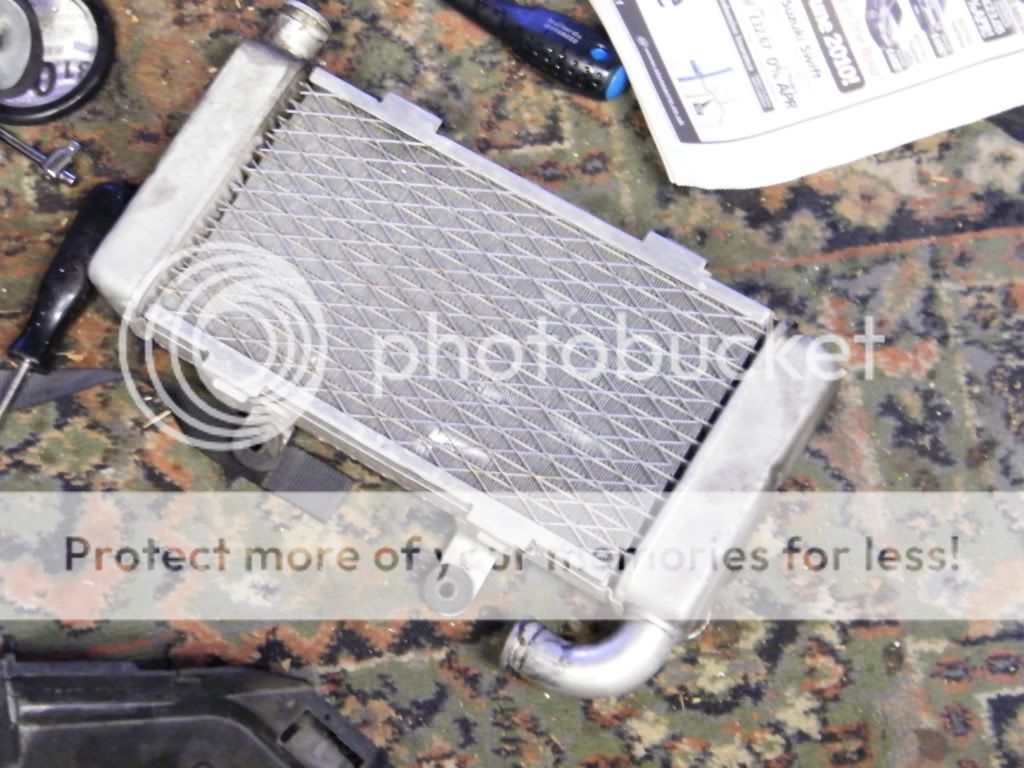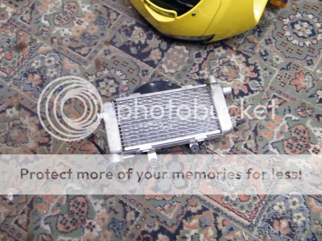 To get the front off is a bit more tricky, First you need to remove the radiators, and the pipes. I was going to do this anyway as i wanted to spray them and the HT lead holder with the fairing brackets as they were getting all brown and furry.