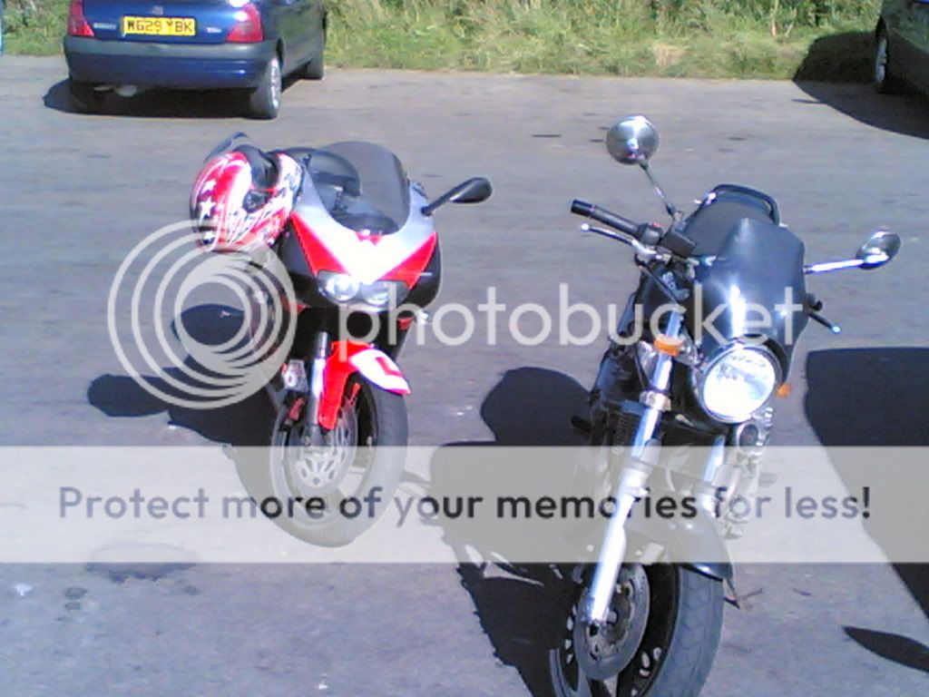 Unfortunately the brakets loosened off on the way home, and folded down and hit me on the head at 70 on the M6  ____________________ Current: Suzuki RG 125 Gamma, Honda H100, Triumph Tiger 800XC, Suzuki SV650 (minitwin) |