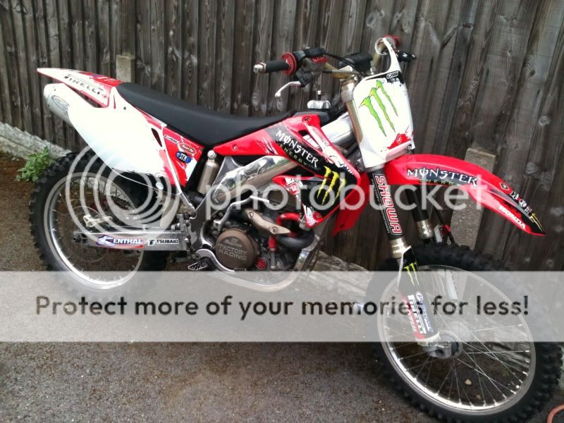 Nice CRF, I loved mine. Although saying that i just sold it to buy a Husqvarna TC450 thats been SM'd (or an SXV 5.5 if i can save up lol).