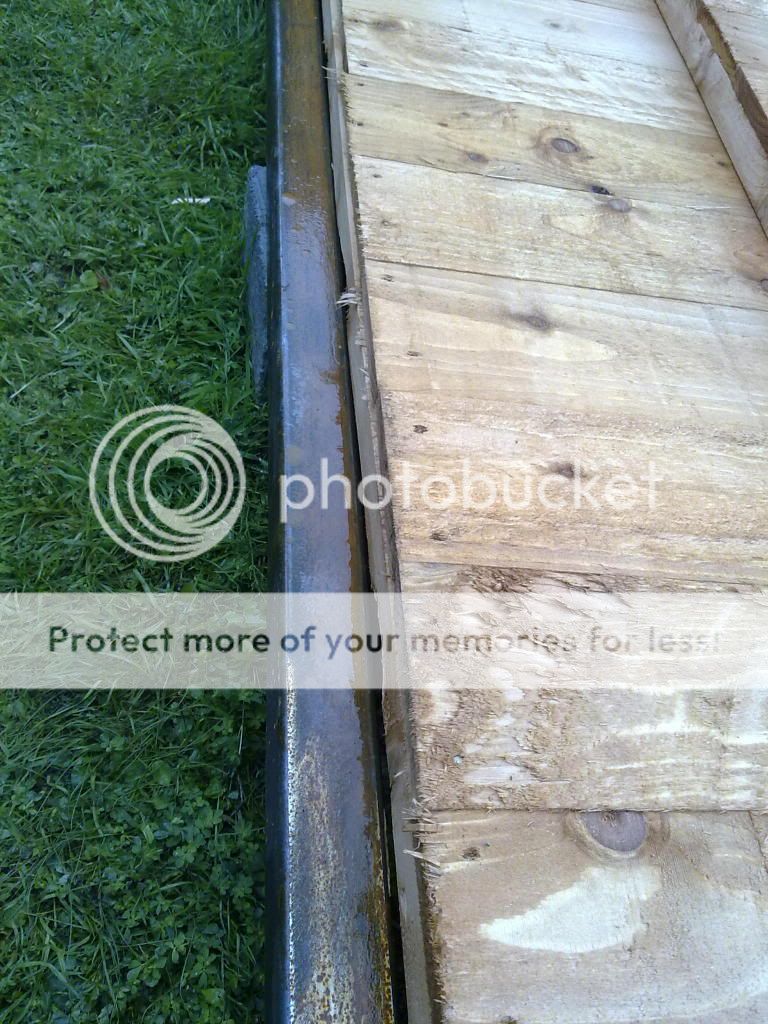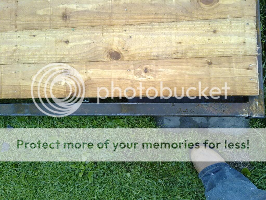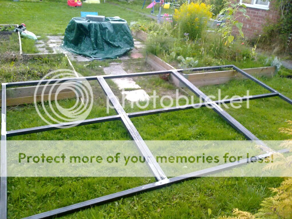 Well, turns out the joists are actually 18" apart and not 1ft as i was origionally told (not that it matters now with the metal frame anyway) and the base isn’t actually 14ft x 8ft, but 13ft8” x 7ft8” – so the base doesn’t actually sit on all the edges of my frame, and is too small: