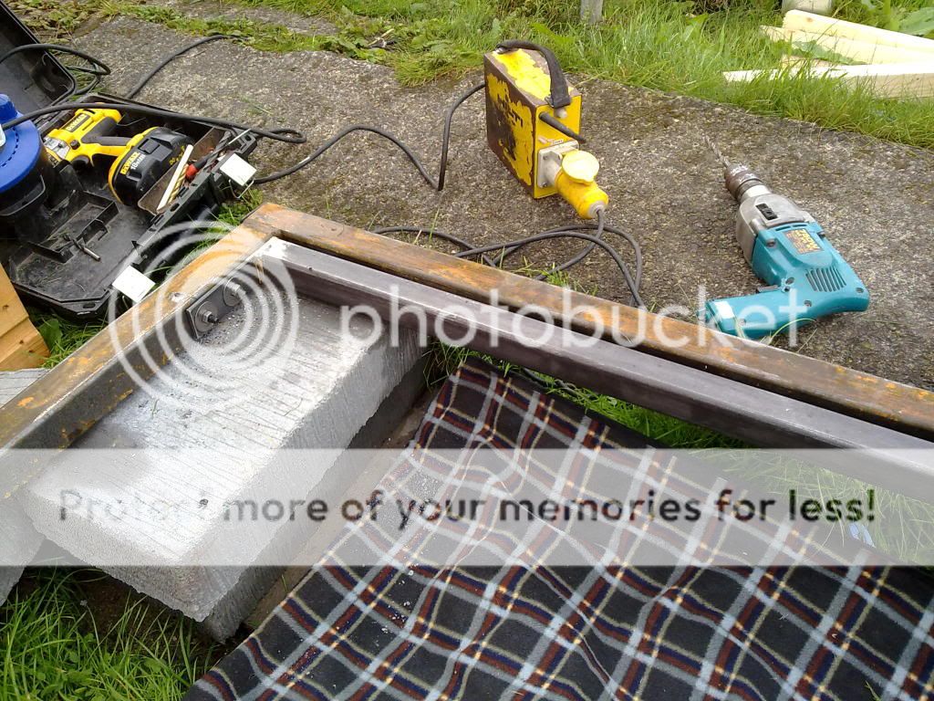 There were a few little problems, I’d hammered some sections of 4ft long angle into the ground and bolted them to the metal frame, just to help keep it in one place, so some of these needed attacking with the grinder: