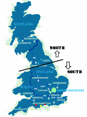 I'm not sure where you got your map from, but it was clearly not a Southerner who drew it up as Southampton is in the wrong place by quite a few miles!!