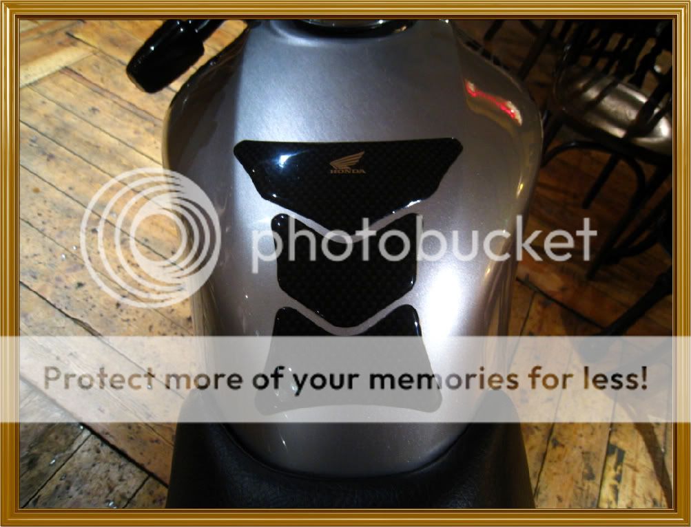 I'd do the screen, stand, mudflap and tank pad. The gold spoke nuts and chrome trim are bearable, but the white lettering on the wheels tips it over the edge. Next stop neons Smile