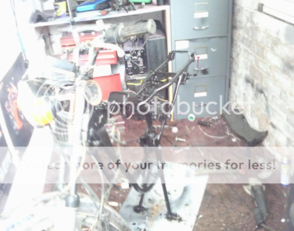 I don't have a before picture as i was quick to the mark on getting the process started. I have included some pictures below, taken today. The frame has been grinded and painted, although the front forks and wheels haven't been removed, and the engine has started to get painted now. I will take the pictures whenever i go to see the bike as it is at a freind's house as he is doing most of the work and is a very skilled mechanic.