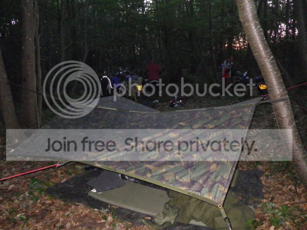 .....sleeping bag in a bivvi bag on a thermarest under the tarp.