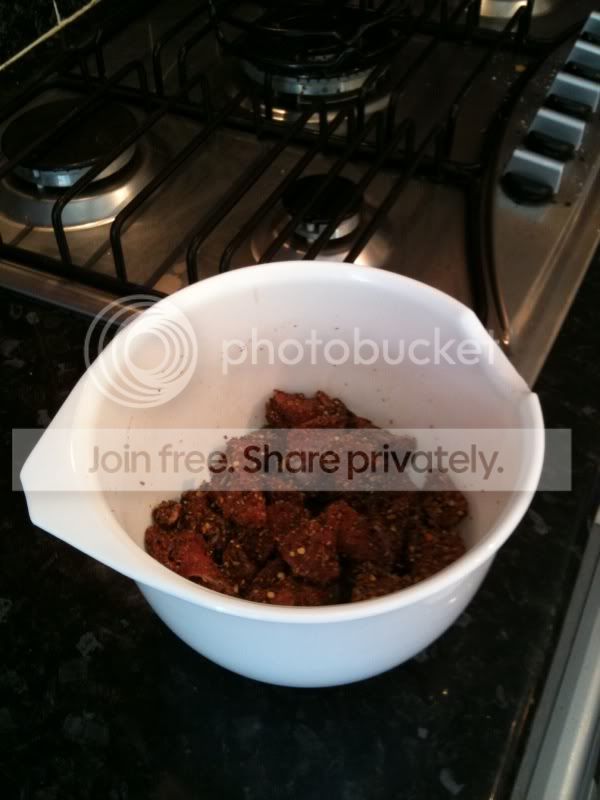 Here we have the meat marinading, around about lunch time I kicked this off. Nipped out for a ride, met the other half in the pub and then cracked on with it...