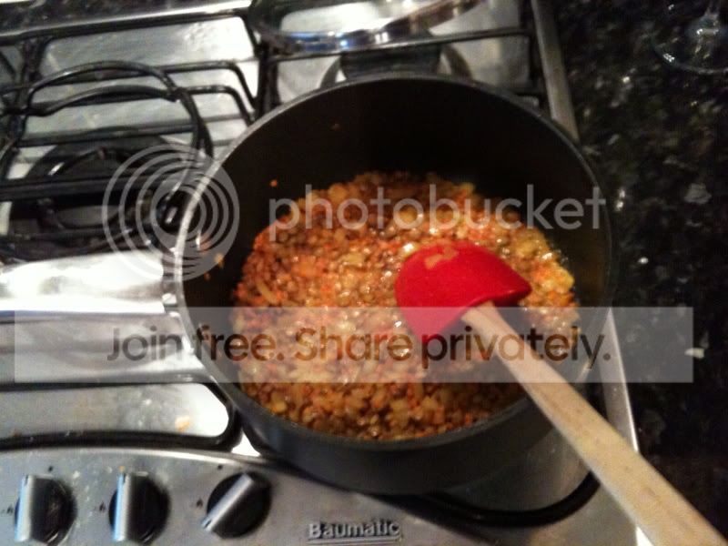 Here we have onions, turmeric, fenugreek, red and green lentils and a little stock, simmering away.