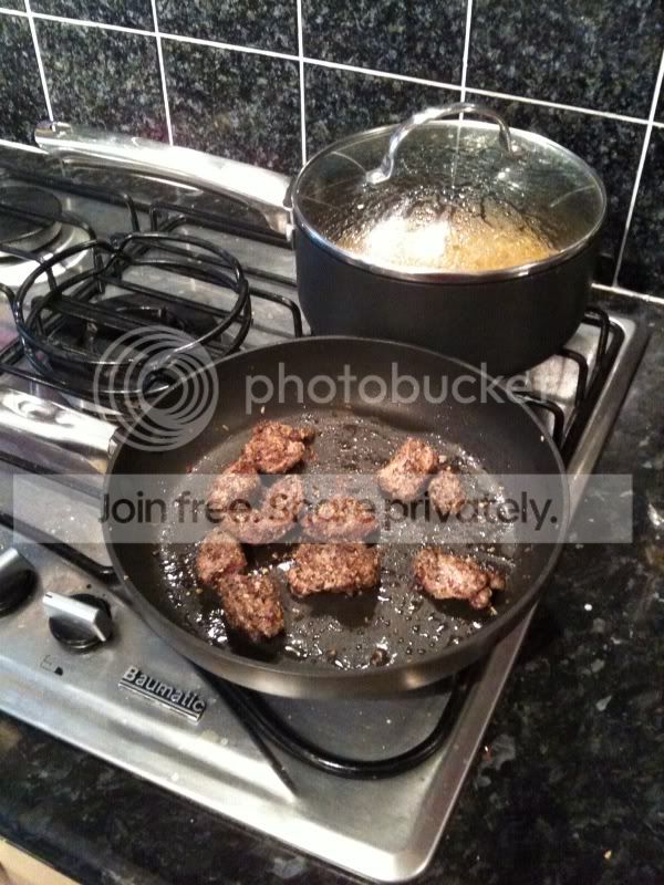 Now I'm frying off the marinated meat. Mmm. Meat.