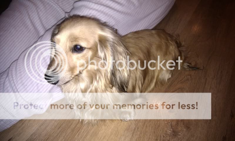 We recently was given a dog. She is a 2 year dachshunds with long blonde hair, pretty little thing.