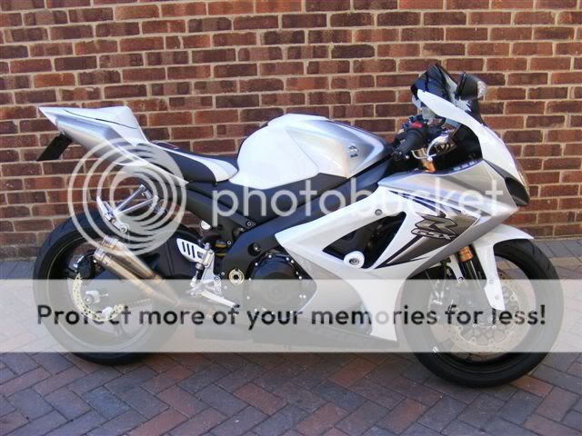 Nice, that colour scheme is the same as my mums gixxer thou. Lovely bikes them! loving the cans you fitted. ____________________ Current bike - GSX-R1000 k8 |