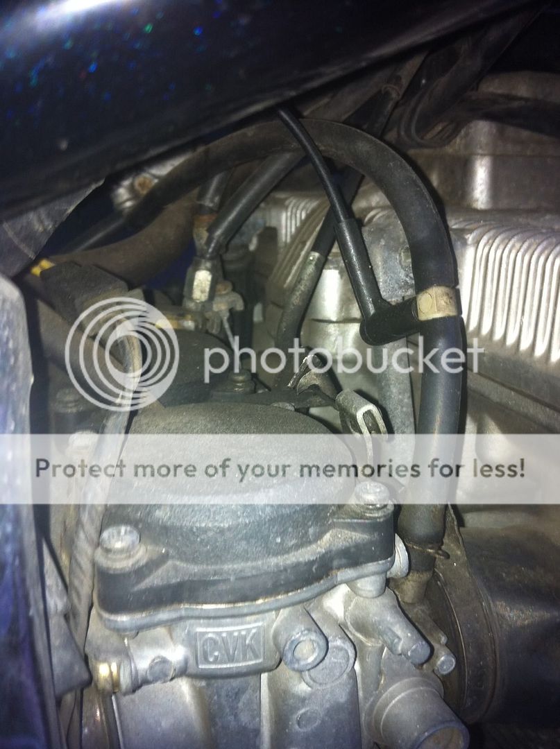 If it's got the clear tube leading aloing the swingarm, it's just missing a short bit of black plastic tube of the same sort that is going to the carb.