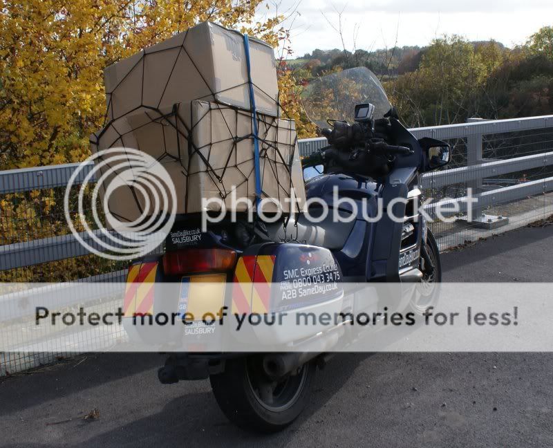 I picked up a bread maker the other day for the missus and it was a bit of a struggle getting the bloody thing onto the bike. Cargo net and then a few bungies just to be sure and all the way home I was paranoid incase it fell off!