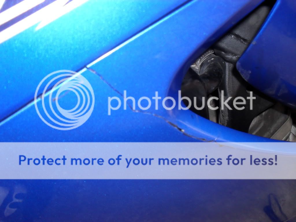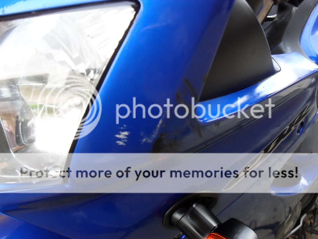 To give a further description of the cosmetic marks; There is a small scuff on the fairing near to the headlight, A small crack in the fairing, A 1 inch scuff on the outside of the fork (this is only cosmetic and does not effect fork operation at all). All in they are only noticeable when inspecting the bike. Pics of the very light damage: