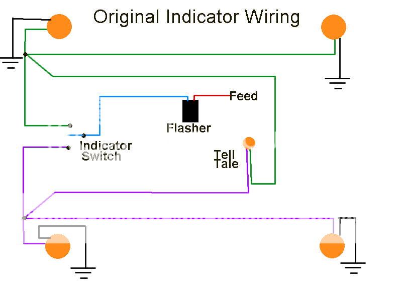 But no tell-tale. So I had the ingeniouse idea of wiring them into the common feed from the flasher unit. Unfortunately..... result continiousely flashing tell-tale! BACK to the drawing board.