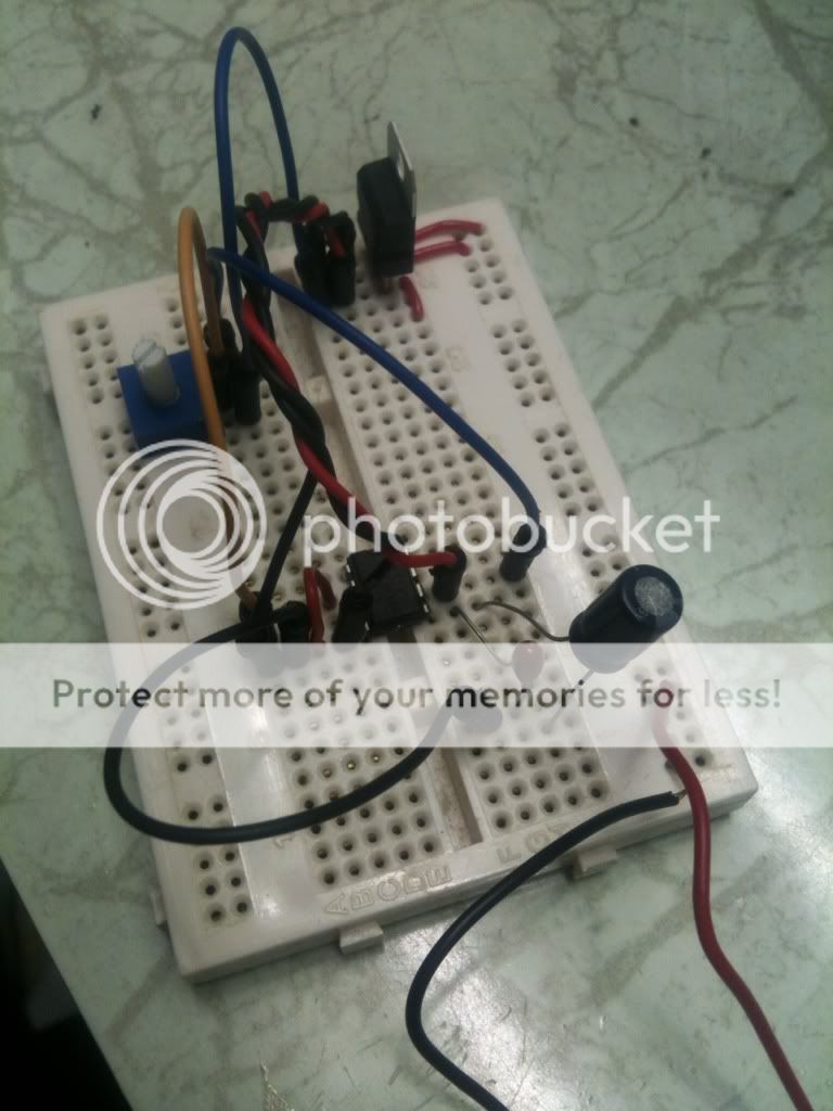 also think my op amp is buggered. it measures the different between the two inputs so if you have both inputs from the same source the output =0v. except it doesnt. its 1.68v or something. i connected a potentiometer to one line and the output goes from 5v to 1.6 with nothing in between. definately fucked!!!