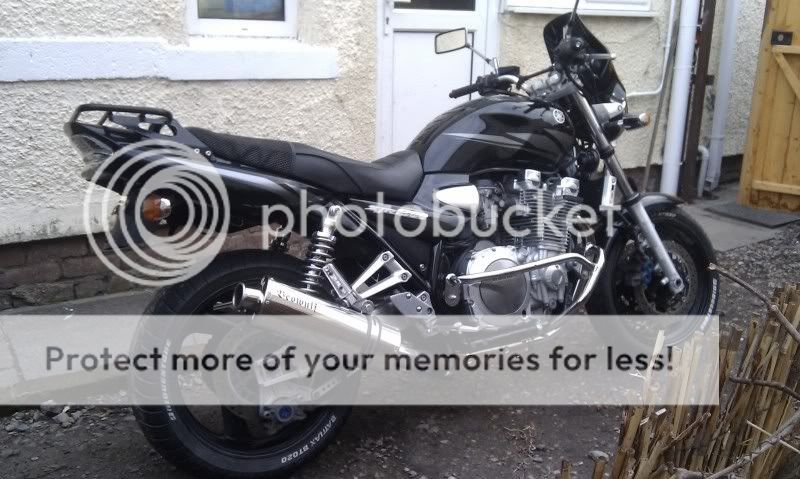 I wanted something that going to cope 2 up with luggage, tent etc and not be a sports bike due to an iffy back but have enough poke for overtakes etc and have a proper pillion seat. Originally went to look at Bandit 1250's but sat on it etc and it didn't feel right. Bloke said there were 3 XJR's in the other room and I'd probably prefer one them, my widgey twitched. Went home to think about it. Talked about it non stop all night. Annoyed the missus. She sent me back the next morning to put a deposit down (At least that's how I remember it) Came back with a used 'JR. Just started to upgrade the suspension and made the Zorst louder.