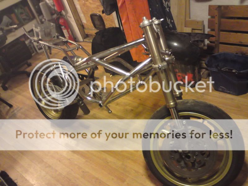 History: He got it about 11/12 years ago after swapping it for his gsx1000 katana. It was in abit of a state then and was put off the road in 99. It sat up until about 6 months ago when he decided to rebuild it. He decided to change the standard wheels and front end for more modern gear.