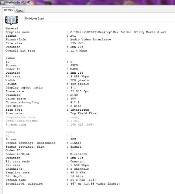 Stream size                      : 1.17 MiB (2%)