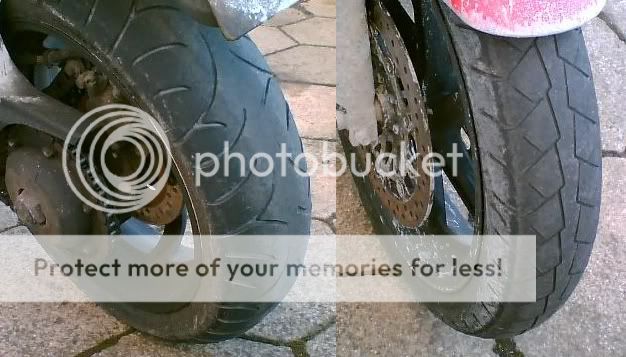 I decided on this course of action because of the huge disparity between the amount of tread on the front tyre I was using compared to the rear.