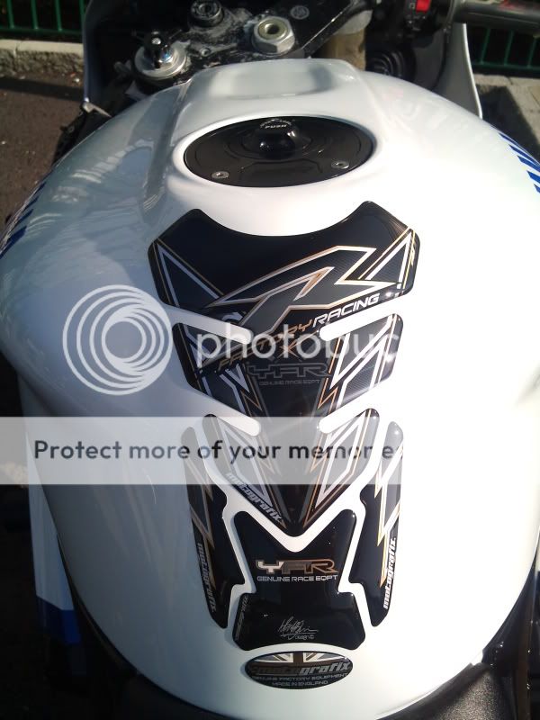 I have two white Yamaha decals for the belly pan to go on, just not got around to it. I would like more on the bottom. It was a last minute desicion to leave them off. Its just getting the right kind so it looks nice  |