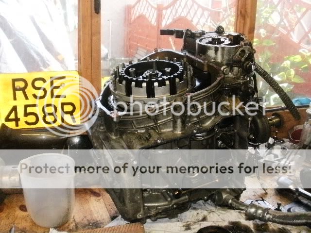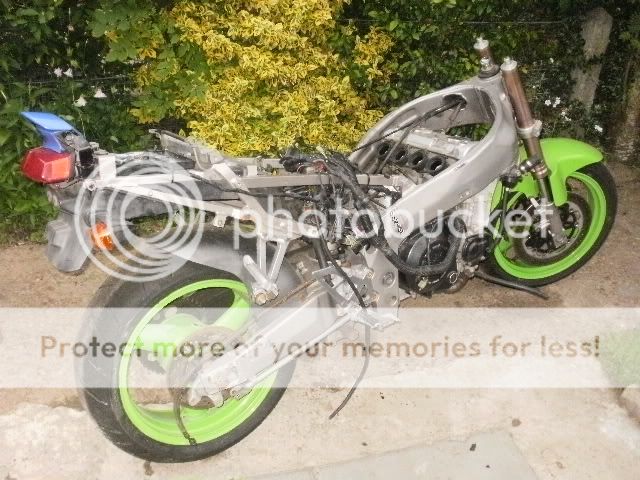 Picked it up as a crash damaged bike just needing a few bits sorted. Well when i dove in i discovered more often than not with projects a lot more of the bike was f*cked than i had initially realised. The rad bracket that goes onto the engine was beyond use as was the radiator it had also managed to hole the pipe that feeds the cams om the left hand side. Tried to change it and the bolt holding from the bottom broke. I lost interest at this point.