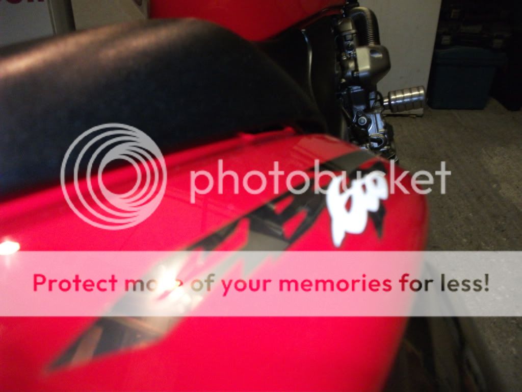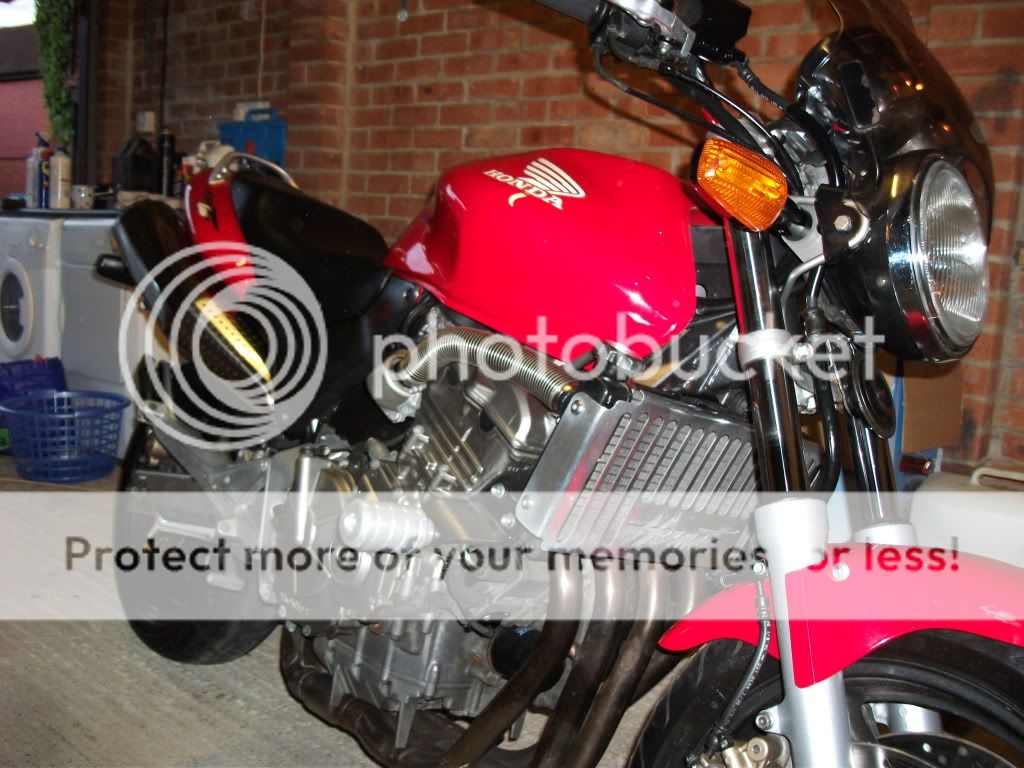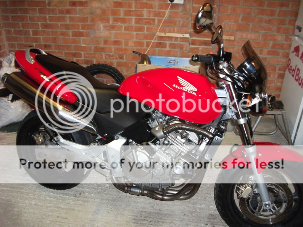 Have to recommend a hugger though; the rear shocks aren't up to much anyway and they'll really take a battering without one. If you get stuck with anything they're a decent bunch on the HHOC, including one guy in particular who has changed his unrecognisably and got in excess of 110bhp out of it. ____________________ Triumph Daytona 675 track bike + girlfriend's Honda Hornet 600