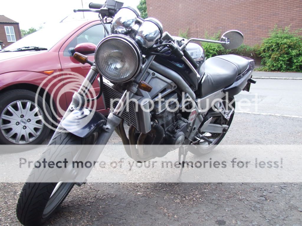 good choice mate, runs a detuned version of my CBR's lump Very Happy I recall that it's a fairly simple to swap the lowers for ones from the CBR along with the front wheel to get twin front discs Thumbs Up