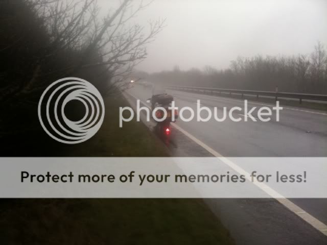 i broke down on the forth bridge (actually i'd left the bike on reserve when i last filled Sad ) i pulled all the way over to the left leaned the bike against the barrier left the indicator and park llght on and jumped from the barrier (meter gap) to the walk way no way would i stay on the bike, people are liable to panic if they see someone on a bike stopped dead in a tunnel or on a bridge,
