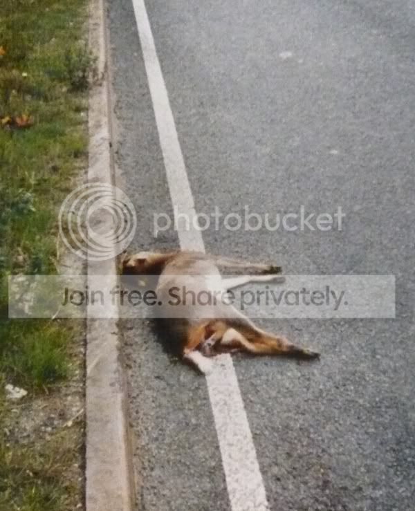 Turned round to see how it was and i had completely annihilated anything beloww the poor hares rib cage however the bastard was still alive! I was going to stamp on its head to put it out of its misery but just couldnt bring myself to do it....... so i ran it over twice more.