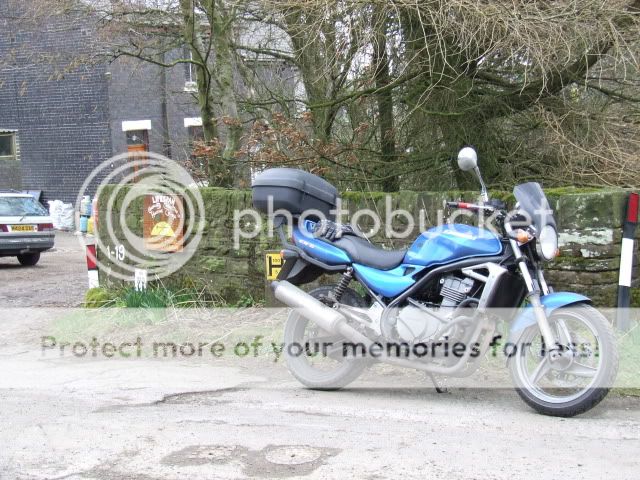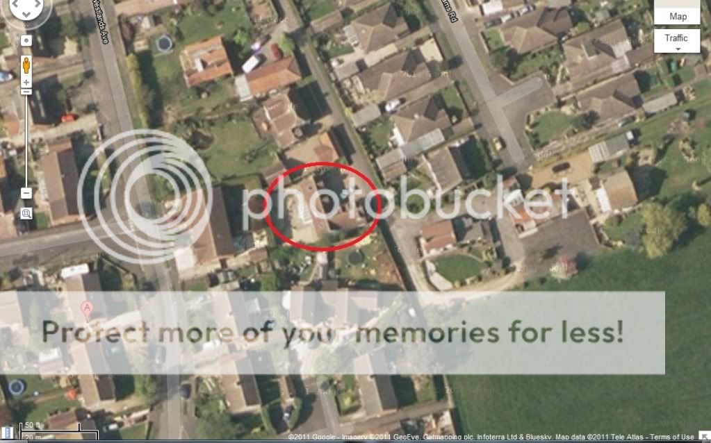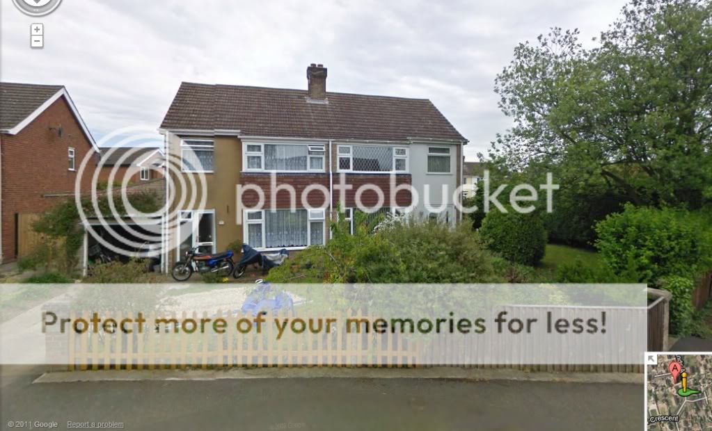 If you look closely you can see on the very extreme right our garage which is where some rat bastard stole my GPZ500 from,also got my Nolan N40 lid that was hanging on the mirror Sad