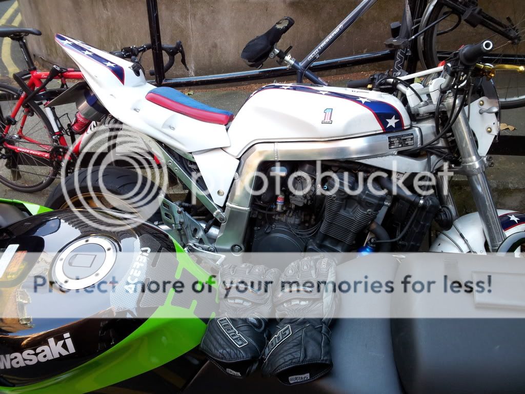 Looks like a oil cooled GSXR1100, would,nt park that in London as some scooter riding cunt would jam in next to it damaging the bikes paintwork. ____________________ Past:NRG50,AF1125(x2),NSR125RR,ZZR250,CX500,VFR400,KR1S,ZZR600(x2),CB400N,YZF1000(x2),KH125,Z200,FX400R,CBR954RR(x2)GPZ500S,GT550,VFR750F(x2),RD350N,XR650R,CBR600F,CB250,KDX250,YZF750R,CRM250,400EXC,KLR650,TTR600RE,DR350S,R100GSPD,RGV250,VMAX1200,DL650,KZ750 Present:G650XC,C12,CRF450X,1190ADV |