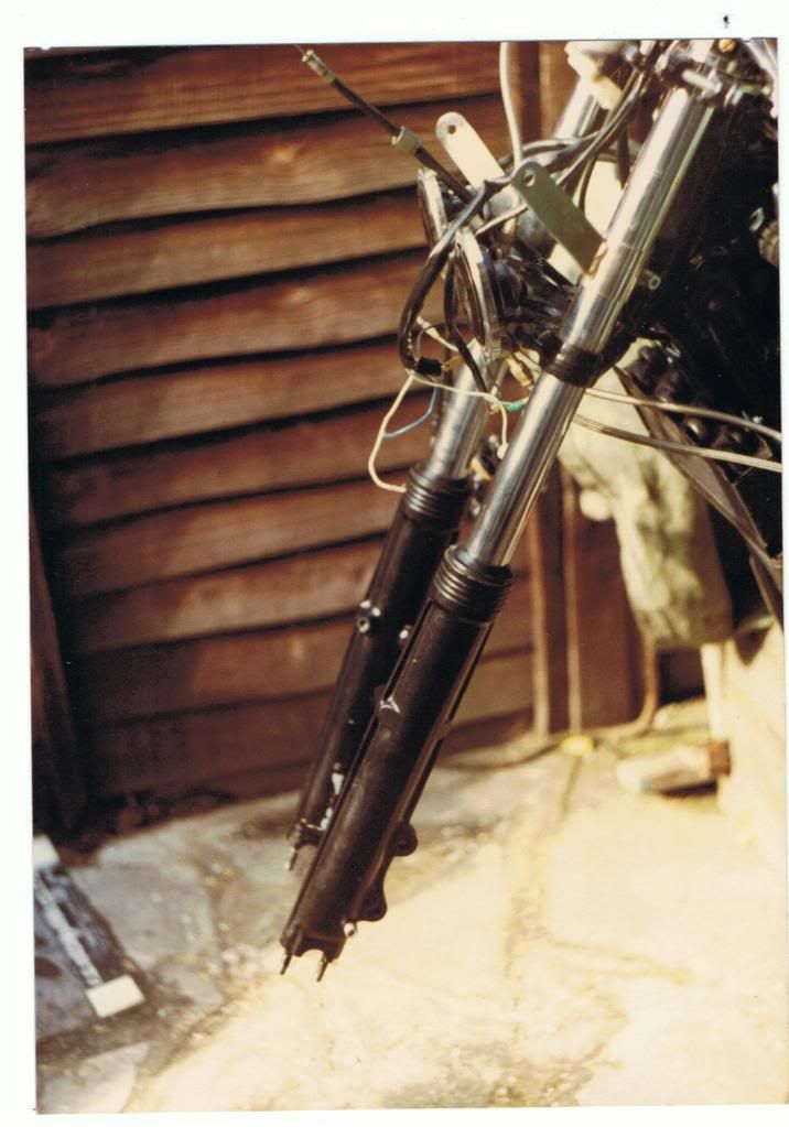 I liked the style of the Jota bars that I had found from somewhere.Whilst at Mochecks in Clapham I had also come across some standard Honda shocks that were longer than the OEM ones for the F2.They were either from the CBX1000ZA or the CB900FZ,but either way they jacked up the back end of the bike for better ground clearance as well as better adjustability.It was only a few years later that they became known as FVQ or 'Fades Very Quickly' - but I never had a problem with them.
