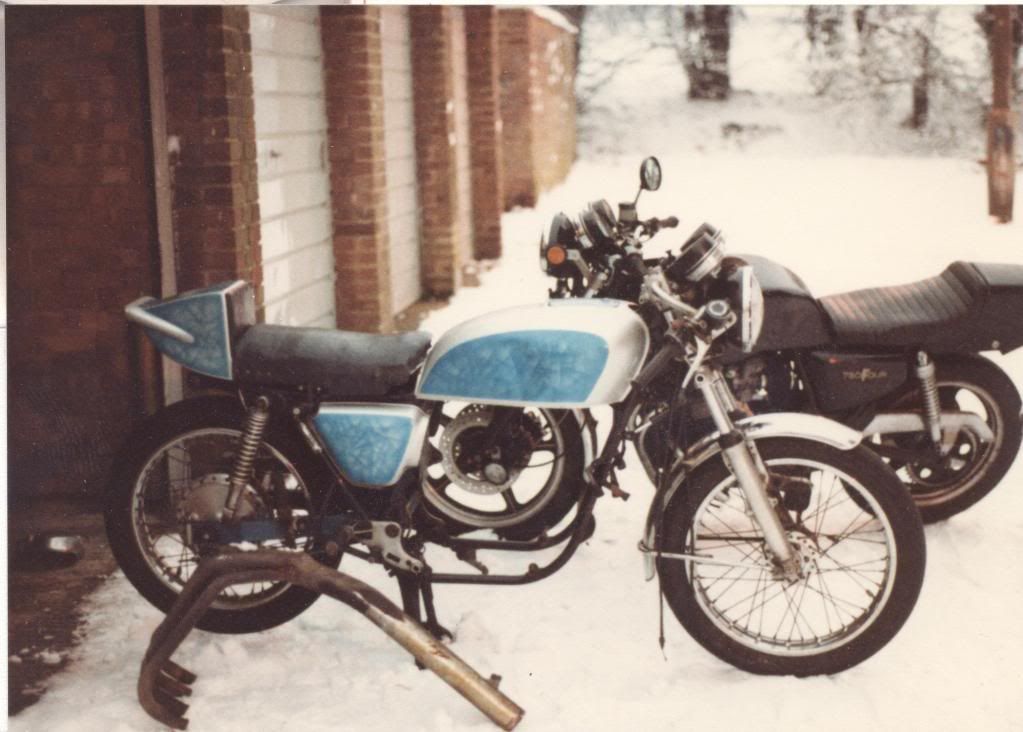 CG Exhausts had made me a new silencer and had it chrome plated,which was not what I had asked for but I was quite pleased with the style so bolted it up and went with it until something else came along,the Harris Track outlet pipe being put to one side for the moment.In the meantime I bought a house with a garage and friends soon found it more convenient to pop by for a chat and a coffee