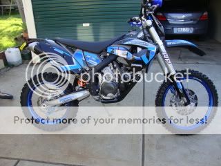 Basically, my last bike was a Honda xr400r. Brilliant bike, had it all sorted, edelbrock pumper carb, stage 2 hotcams, fmf titanium 4 exhaust, full customised suspension - the works. Loved it to bits (cant believe i had to sell it really )