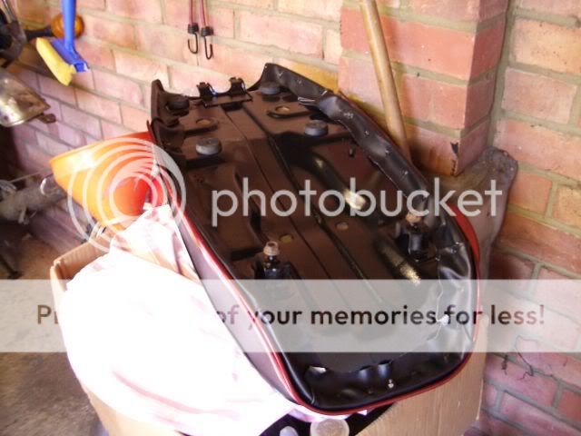 Then a quick rub down and several coats of Hammerite on the metal pan, top and bottom. Left that to dry for a week or two then rebuilt the seat. I don’t know if they’re all the same design but mine was just a case of putting the foam in place and hooking the new cover over little teeth all the way around the seat. No staples. Bolted the trim back on and jobs a goodun! A bit of a wrinkle near the back of the pillion, but I'm not fussed.