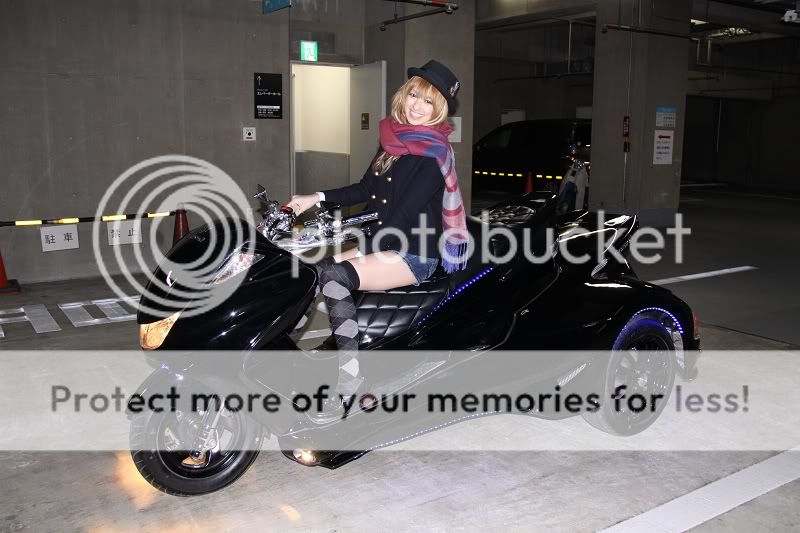 My work mate today told me that she wants a trike if it's not expensive. (we can ride it with car license and without wearing helmet here). I think she's not that serious. I heard that a female talent bought a trike and she thought it cool(I remember it was 250cc scooter based one).