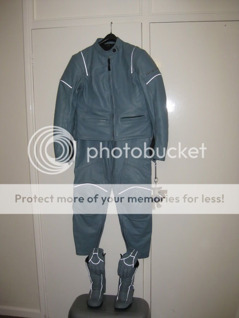 Jacket and trouser both have moulded removeable armour and all zipps and velcro are in good condtion. Boots have a little wear from gear changing, ect.