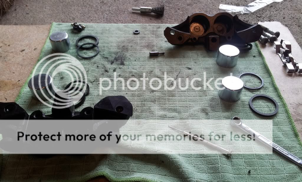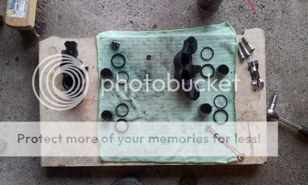 next job was to strip and clean the R/H front caliper, i did the L/H one last week and it's not my favourite job so couldnt be arsed to do them both at the same time Laughing . They were ready for doing though as there was a fair bit of winter crud behind the dust seals, the oil seals were fine though.