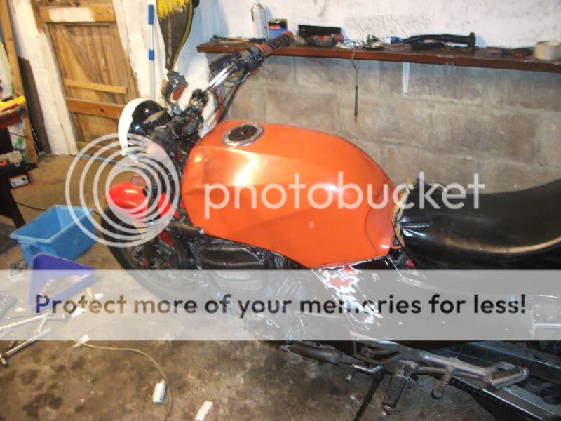 Tonight I'm going to try getting the petrol tank dried out (which since it's all going to need repainting anyway I might just blast it with the heat gun.... I might actually remove the petrol first too), and since the weather looks like it's going to be a bit mixed over the next couple of days I might do a better job of filling the petrol tank.