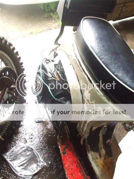 i have just got to do the wiring, and connect up the rear brake, gears and clutch, fit the tank, fit the exhaust, finish painting the tail light, and get a shorter speedo cable,