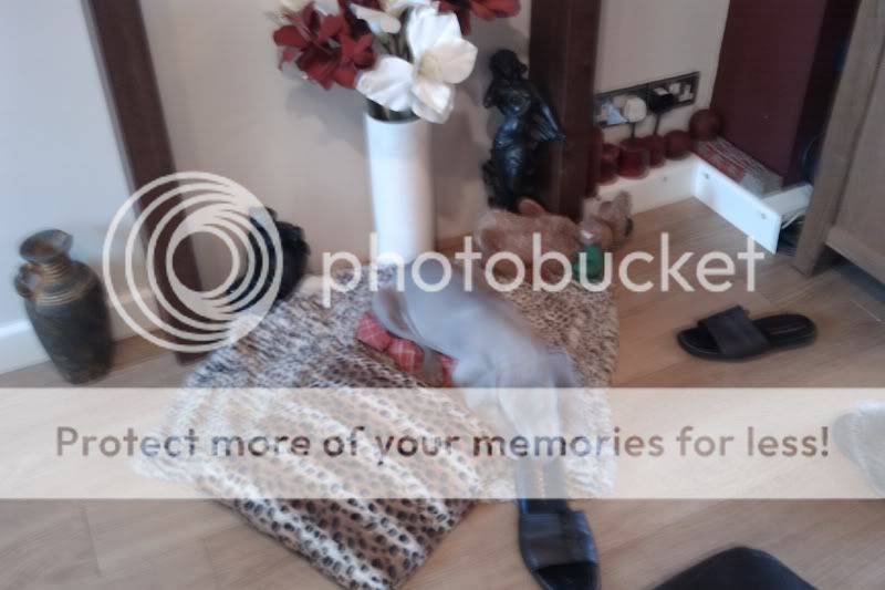 Yam yam bam bam, the pic is indoors, out the back is Chav can be seen miandering about, the dog is there fore always , alert , ready and waiting to kill said Chavs, can't have the tail getting in the way now can we .....