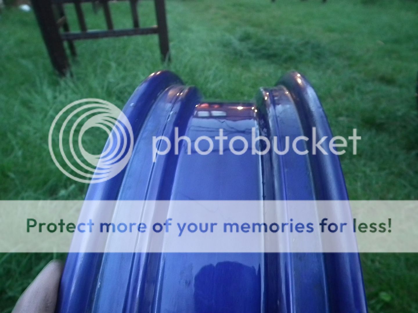 The wheels have a rather 'fetching' blue colour, reminds me of the glaze on my dinner plates. but does give a a chance to buy some road/track tyres for the hotter days.