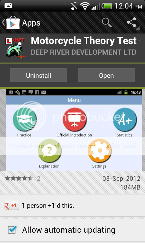 if anyone reading this is looking for a good app for their android phone I have tried quite a few and this one is clearly the best out of all the ones I tried. it's £2 and in my opinion well worth it. it has 10 hazard perception videos and loads of theory test questions. it's very well put together and you can customize it more than any other app I have come across. you can set it so when you have answered a theory test question correctly x amount of times it doesn't ask you again. loads more other options. it's a really good easy to use app that from what I can make out follows the exact same rules as the proper test which obviously is a must Smile
