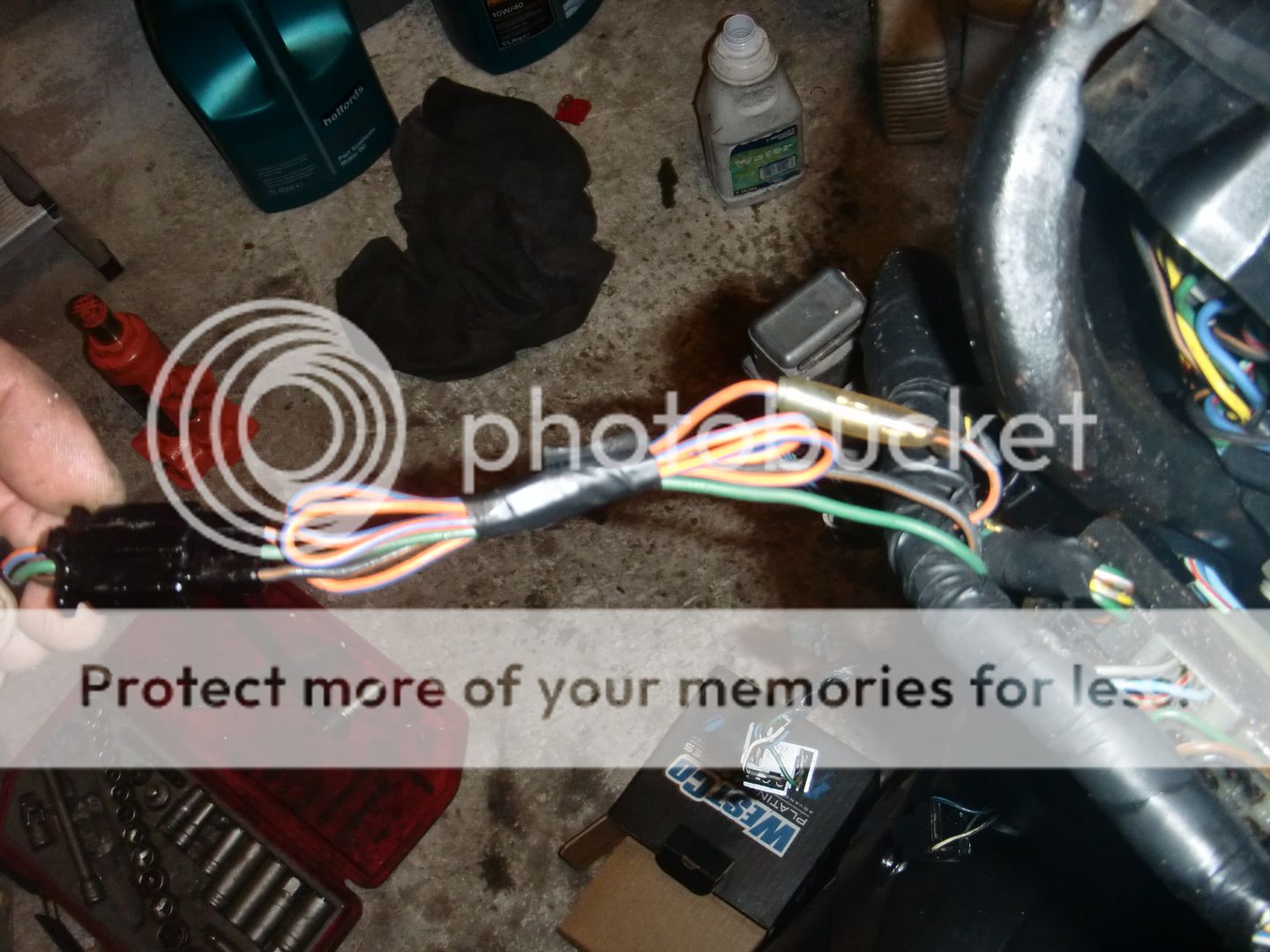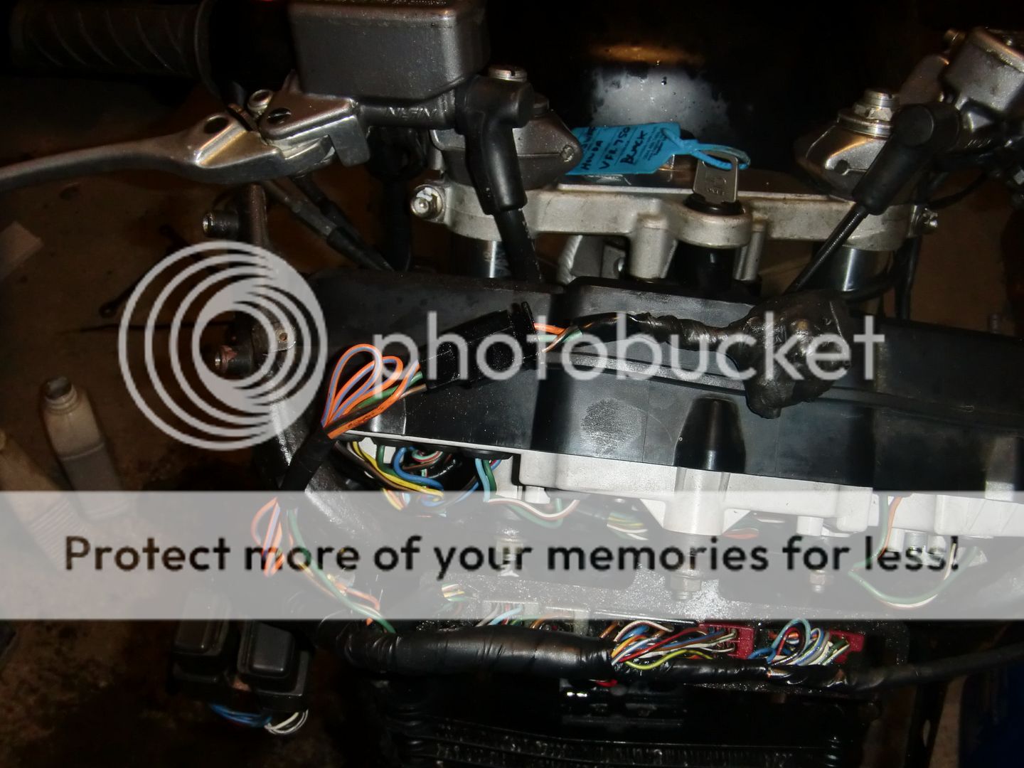 I found a bug lump of self amalgamating tape wrapped in PVC tape hanging off the loom at the front of the VFR. Pretty much just flapping about on the end of its wires.