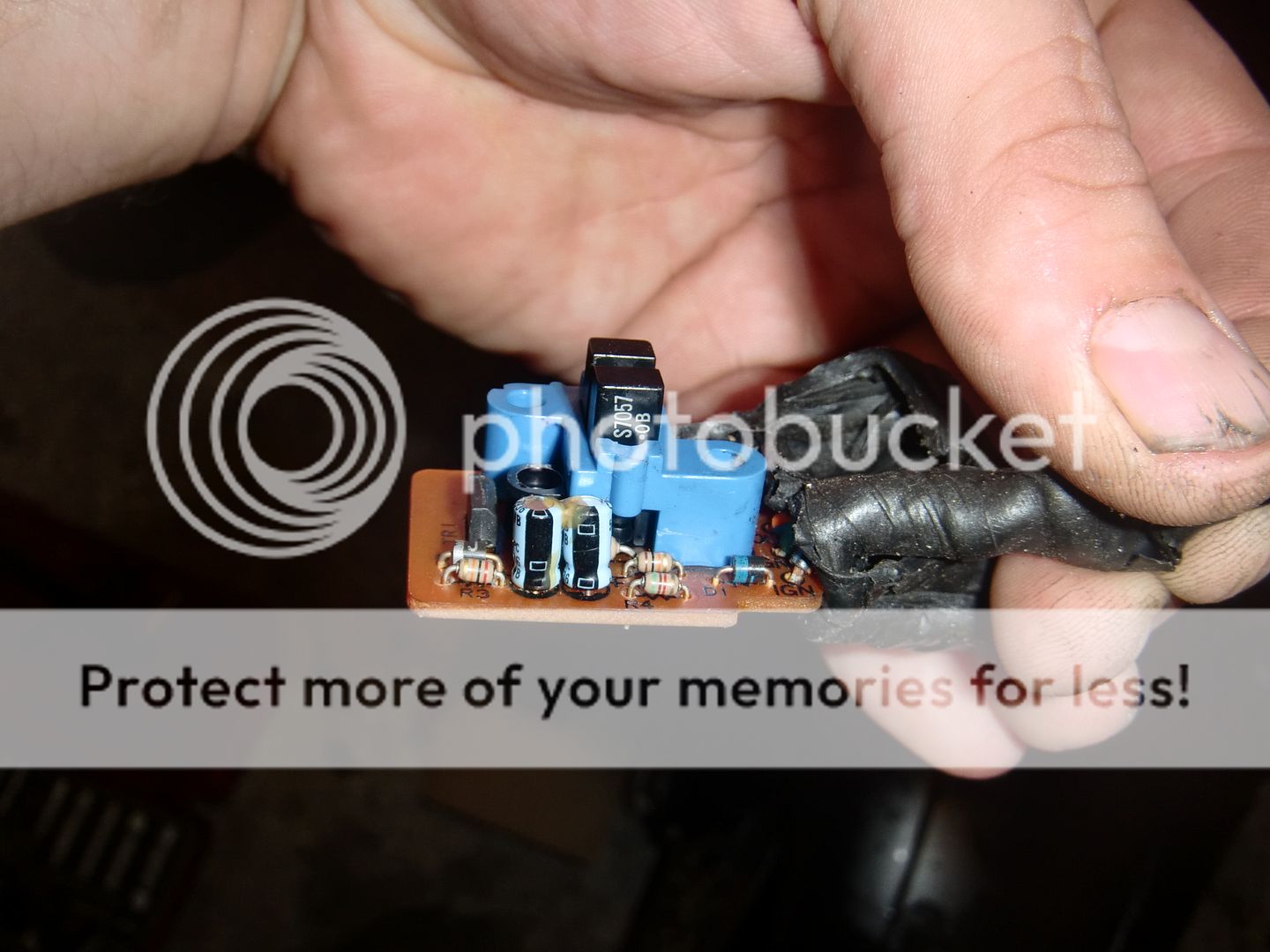 SO. It's got a small PCB inside it. It's attached to the loom with a very original looking connector block and has a green earth wire, a black on brown live wire and an orange wire with a blue tracer. The orange wire comes off the loom at a bullet connector then attaches into the connector block and is about five times as long as the other two wires (possibly as if it is meant to go somewhere else first?).