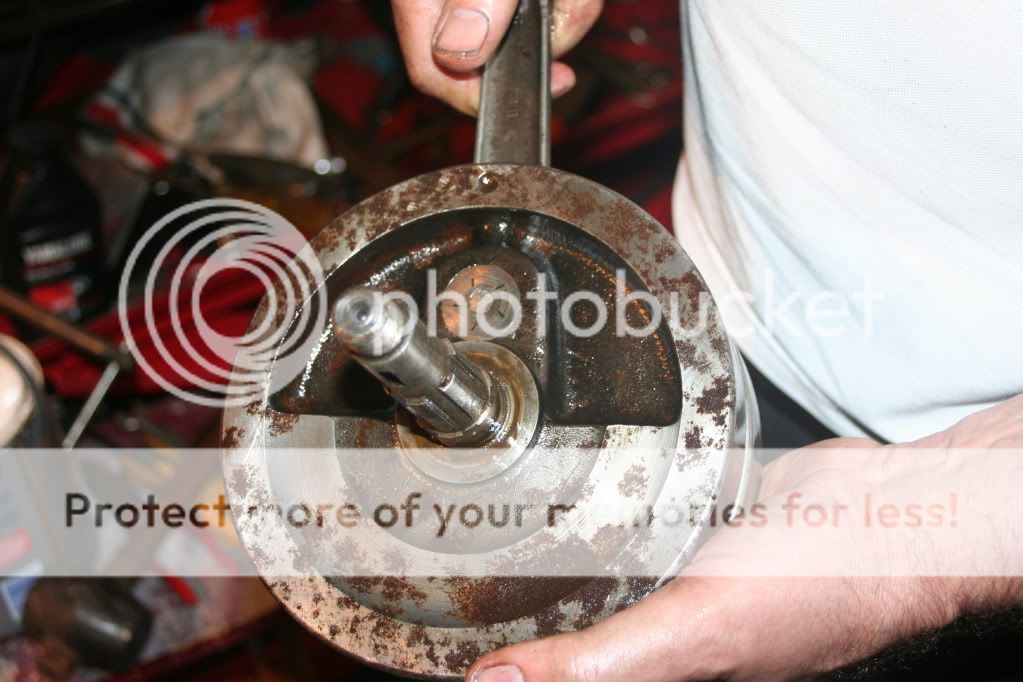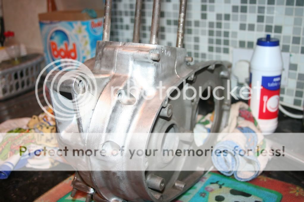 Got the motor fully stripped down now, with abit of a list of what i need, as i thought the bronze crank bush is completley shot, it looks like its picked up on the crank and spun round, its marked the castings, so im not sure what im going to do with it yet, ive heard rumours that you can get roller bearings to fit, ill have to dig around!
